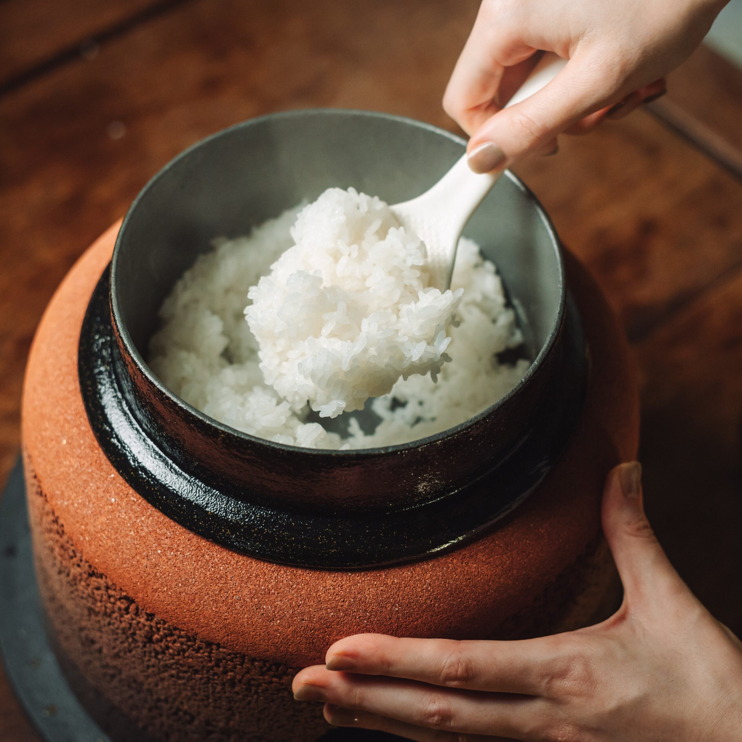 原田左官オリジナル商品の一つである「版築かまど」。市販の固形燃料を使用し、しっかりと火を使うことで釜の中の水が対流し、炊き上がりがお米が立った状態に。炊いたご飯はお米が立っていて電気釜とは比べ物にならないくらいおいしく炊きあがります。